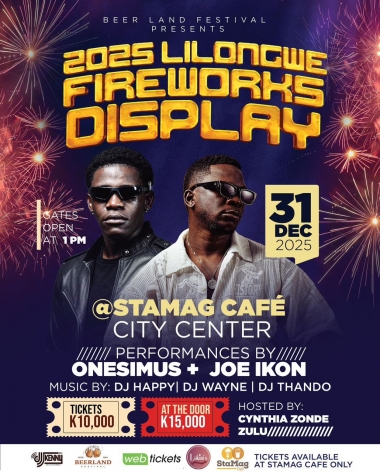 Wed, 31 Dec 2025 13:00:00 UTC @ Stamag (City Center) - Beerland Festival presents the “2025 Lilongwe Fireworks Display”, happening on 31 December 2025 at Stamag Café, Lilongwe. The celebration will be spiced up with live performances f...